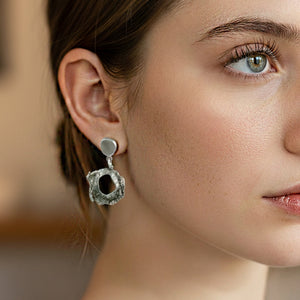 Αυτά τα μακριά καρφωτά σκουλαρίκια είναι εμπνευσμένα από τα φυσικά μοτίβα και τις υφές που βρίσκονται σε σχηματισμούς ηφαιστειακών πετρωμάτων, και αποπνέουν μια ακατέργαστη κομψότητα