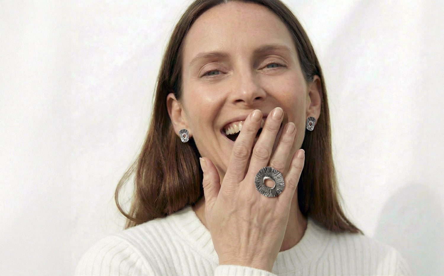 Silver «flower» stud earrings.